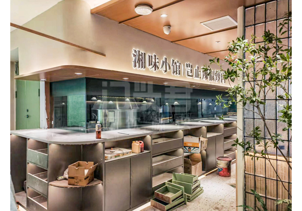 项目背景:以饭湘许隶属于广州市以饭湘许餐饮管理有限公司、一家超人气的新生代湘菜、主打人群为18-35岁的年轻人、品牌经营模式创新、形象新颖、食材新鲜、摒弃了其他湘菜古香古色的装修风格、而选择了现代都市风、感觉大气中不失清新的韵味。