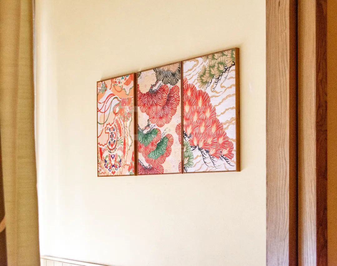 墙面空白处装饰满了日本文化的挂画,