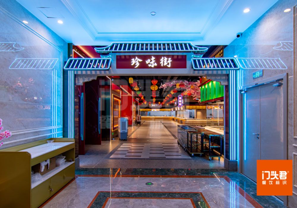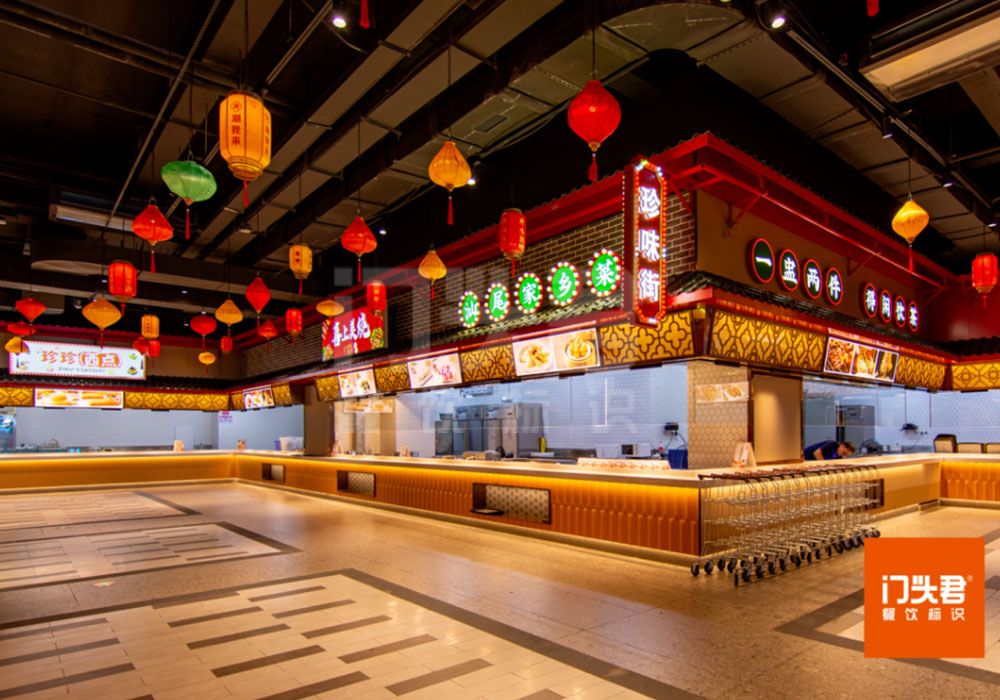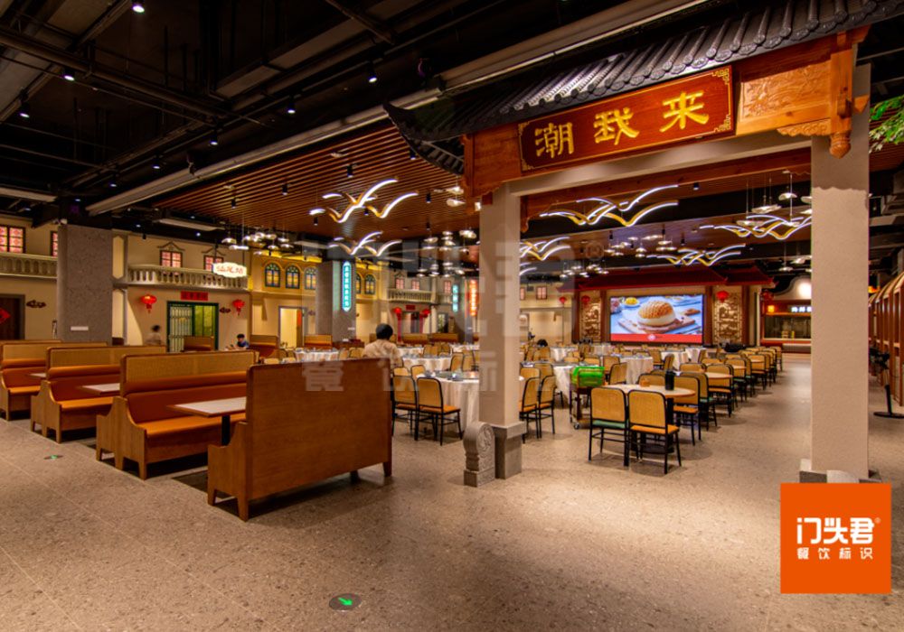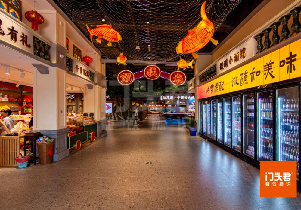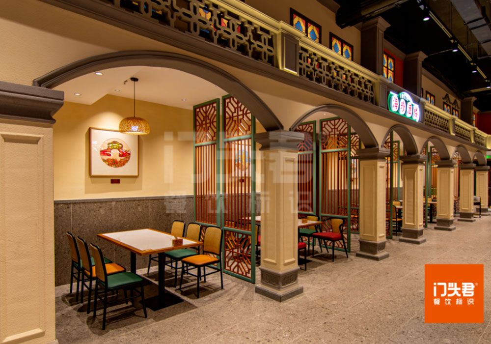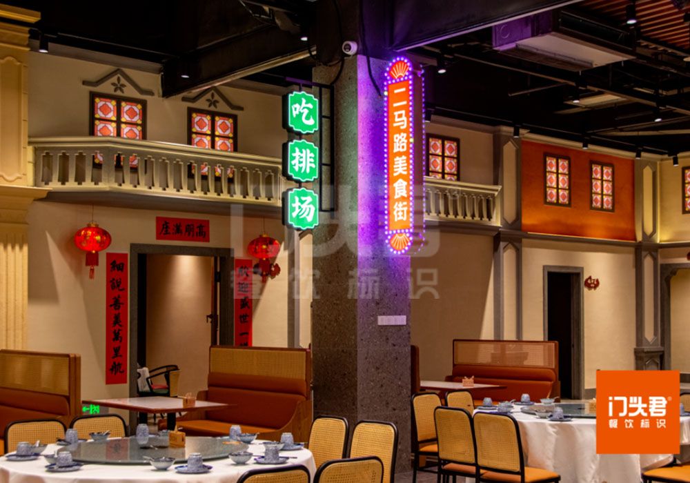潮我来主题餐厅区域四周的包间是骑楼装饰,